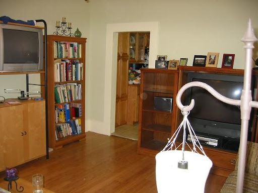 The funny thing is that we haven't figured out what to do about the old TV, so we are now not merely a four-TV family, but we have a two-TV living room. And in case you wanted a quick headcount, the residents here are (1) me, (2) Matt. In our defense, 1 TV is halfway dysfunctional and lives in the garage, 1 is our wee little kitchen TV, and 1 is the usurpee, probably fated to take up residence in the crawlspace under the stairs. Still. 4 TVs. 2 people. Livin' the Costco lifestyle, my friends.