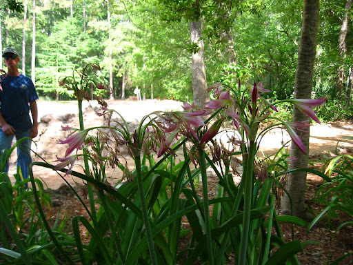 The trip has also given me a healthy respect for my own penetration and sagacity in choosing 'Ellen Bosanquet' for propagation back at A&M. I had never seen it bloom till this summer--the ones I gave Mom & Dad never bloomed when I was around, and the ones I've grown in pots have been too sad and starved all this time to bloom. I've got three in the ground and two more in pots that I need to plants, so perhaps by next year I'll finally have some blossoms of my own. Because they really are stunning. The ones in Mom & Dad's yard are a deep, rich, pink, with rounded, bell-shaped flowers on tall scapes. Just lovely.